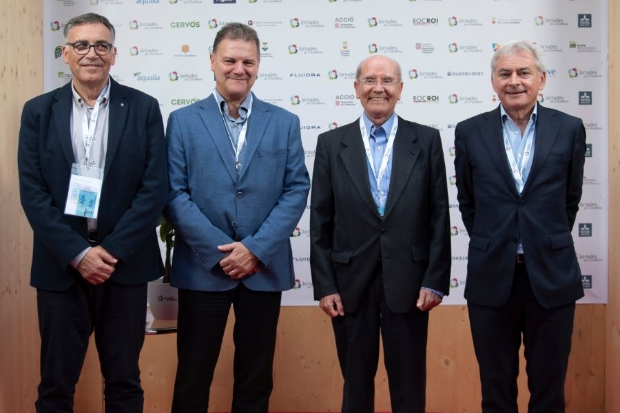 Sr. Eloi Planes, president de Fluidra, Sr. Miquel París, president de Genebre Group, Sr. Gerard Estrella, director de Serveis Tècnics de Caldea i Sr. Josep Puigbó, periodista i assessor de comunicació